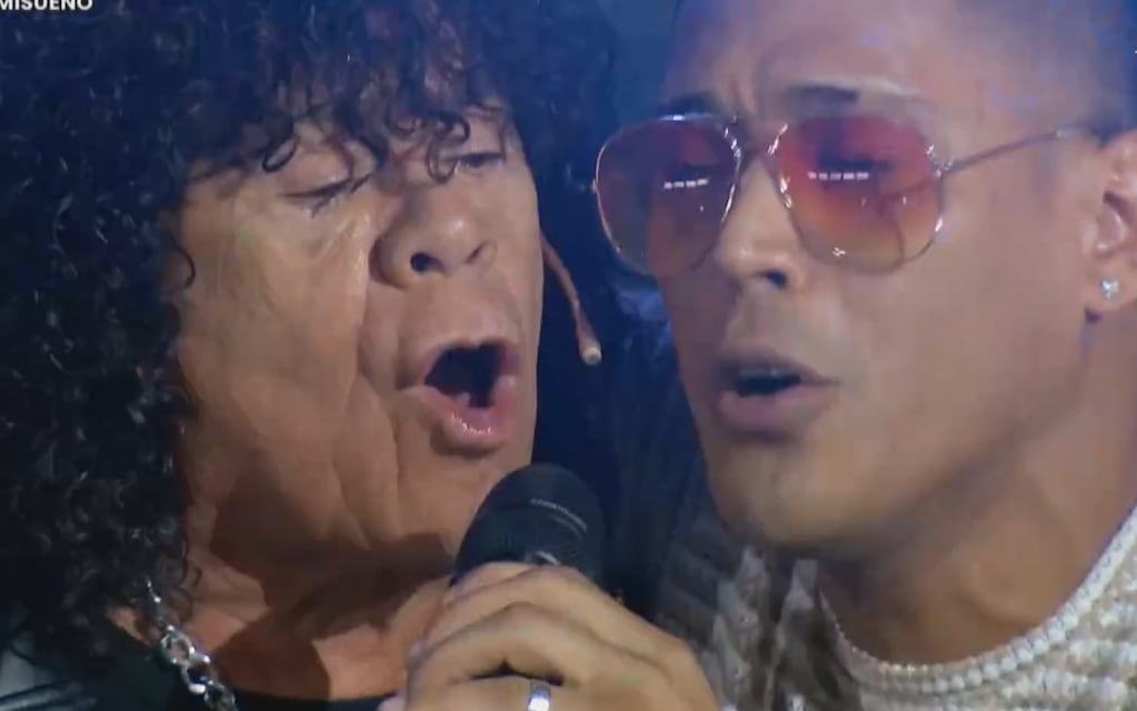 El joven interpretó “Beso a beso” y el ídolo del cuarteto lo acompañó en el escenario, desatando aplausos y baile entre el público y el jurado.