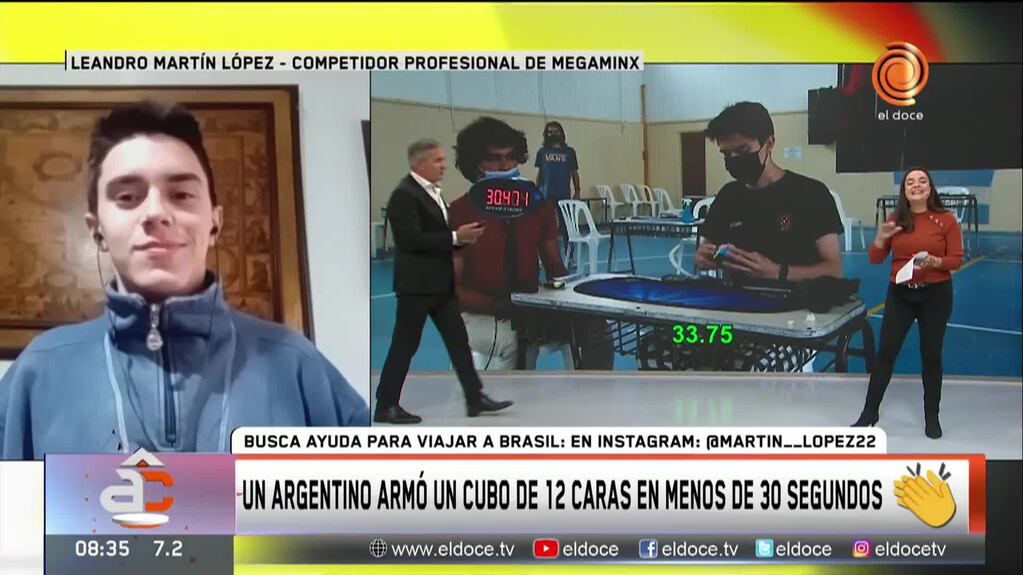 Leandro Martín López tiene 18 años y es competidor profesional de Megaminx. Después de seis años, contó en Arriba Córdoba que rompió el récord mundial: llegó a hacerlo en 22 segundos. En Arriba Córdoba pidió ayuda para viajar a un campeonato Sudamericano en Brasil.