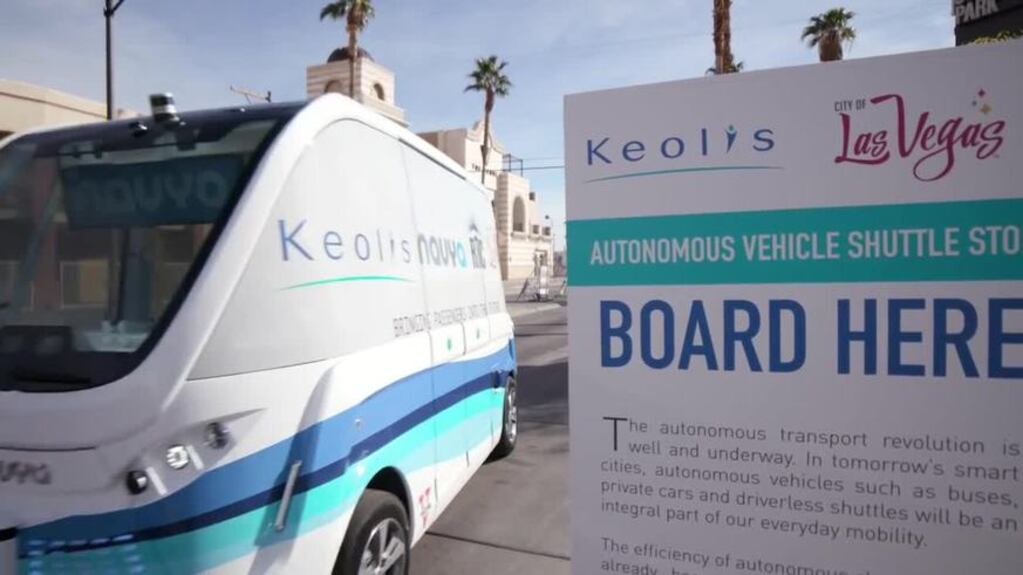 En su debut con pasajeros, el vehículo autónomo fue embestido por un camión. No hubo heridos. Mirá cómo andan estos "bondis" en las calles de Las Vegas.