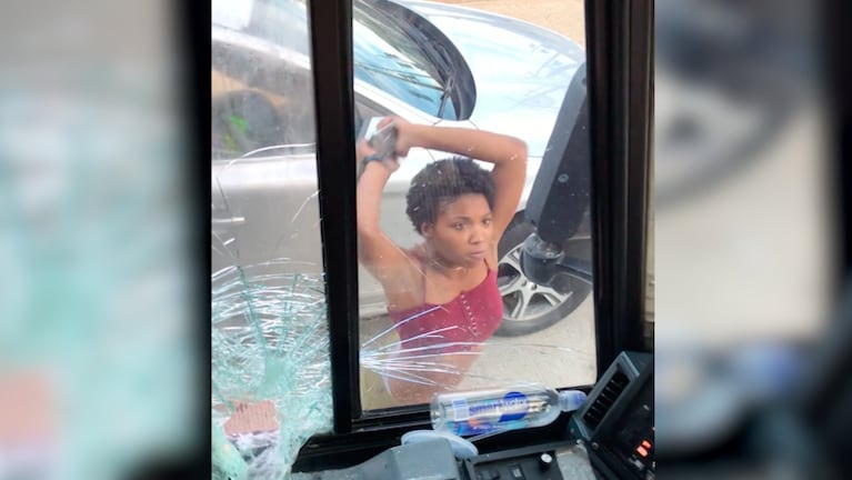A lo relato salvaje, una mujer atropelló a un chofer que criticó su forma de conducir. Antes destruyó las ventanas del colectivo. Ocurrió en una calle de Washington.