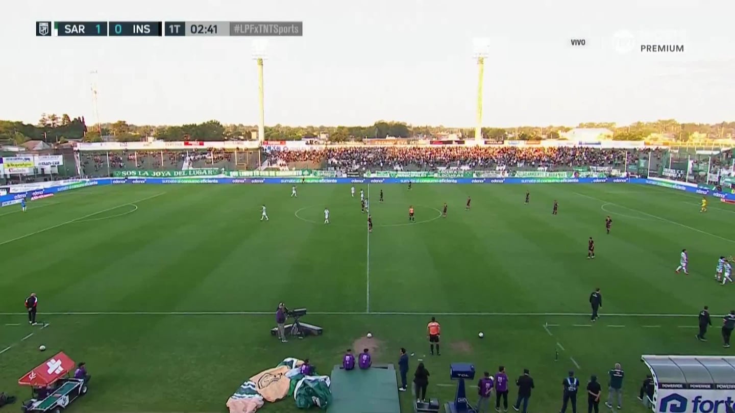 El gol de Insaurralde que marcó el 1 a 0 de Sarmiento ante Instituto.
