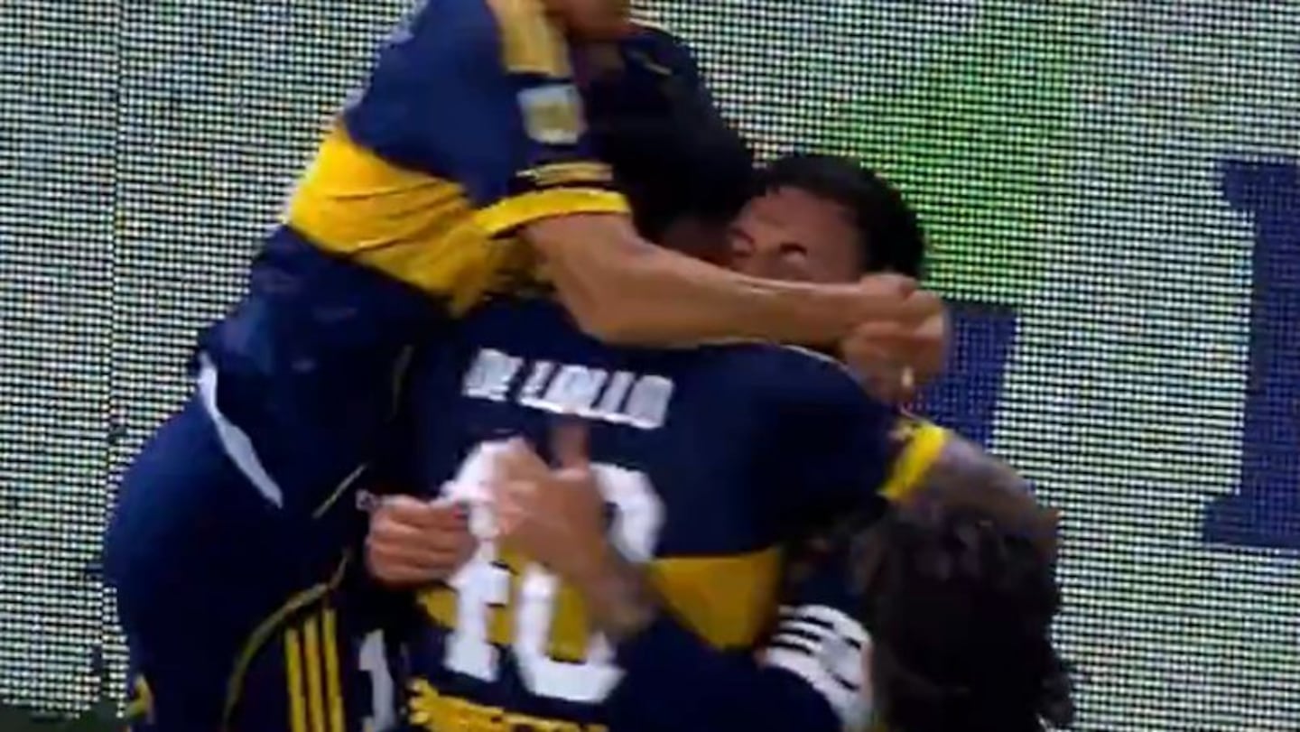 El delantero xeneize metió un testazo inapelable y abrió el marcador en La Bombonera en el peor momento del local.