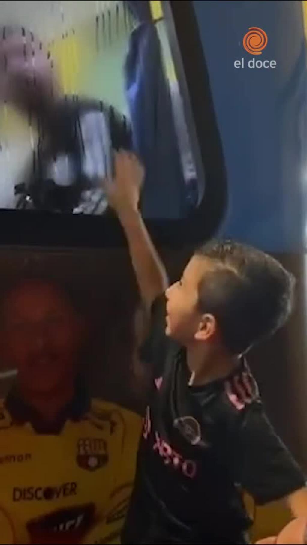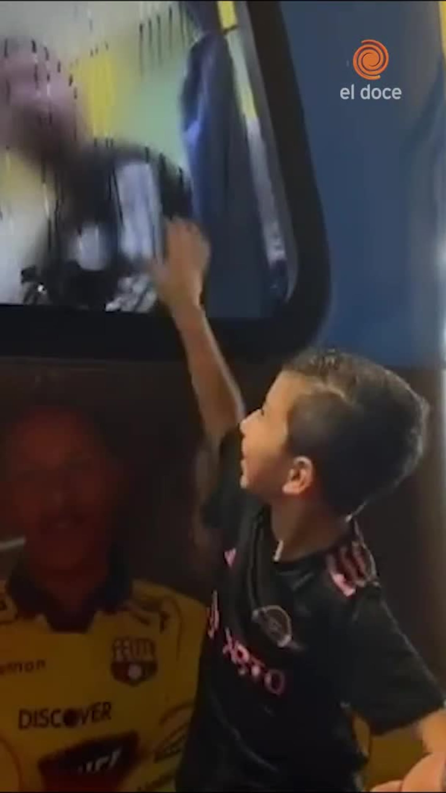 El jugador Miguel Parrales y su hijo, Miky, recibieron el inesperado gesto del crack argentino que desempañó el cristal del micro para saludar al pequeño.