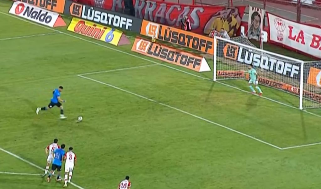 El delantero de la B malogró la pena máxima ante el arquero del Globo, que le adivinó la intención.