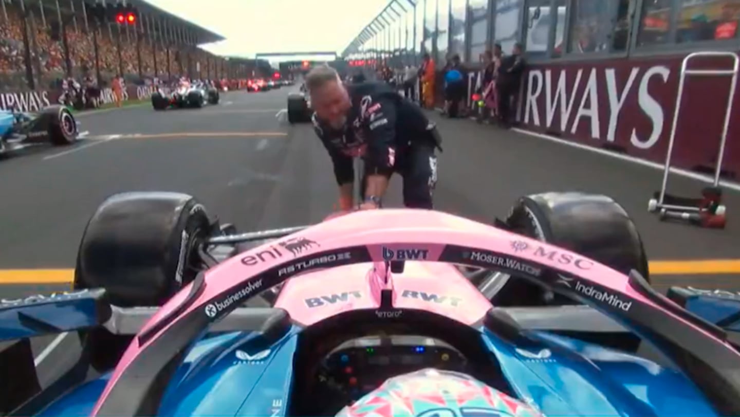 Luego de que un mecánico tocara el auto en la línea de largada, el piloto argentino recibió una sanción con un "stop and go".