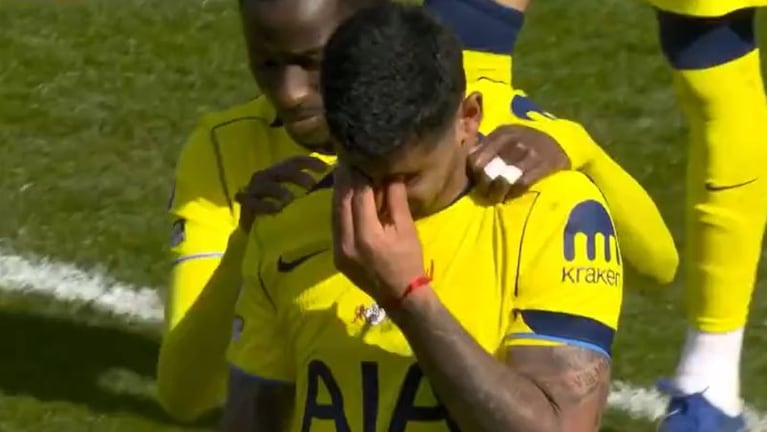 El cordobés sufrió un golpe en el duelo entre Tottenham y Sunderland por la Premier League y tuvo que ser sustituido. El Dibu Martínez también sufrió una molestia.