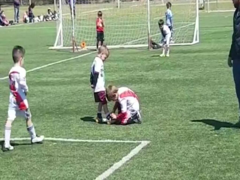 En la Liga Intercolegial de Fútbol Infantil (LIFI), dos nenes regalaron una imagen que enseña mucho a los más grandes. En pleno partido, el chico del Corazón de María le ató los cordones al de San Buenaventura (video de Daniel Peirone).