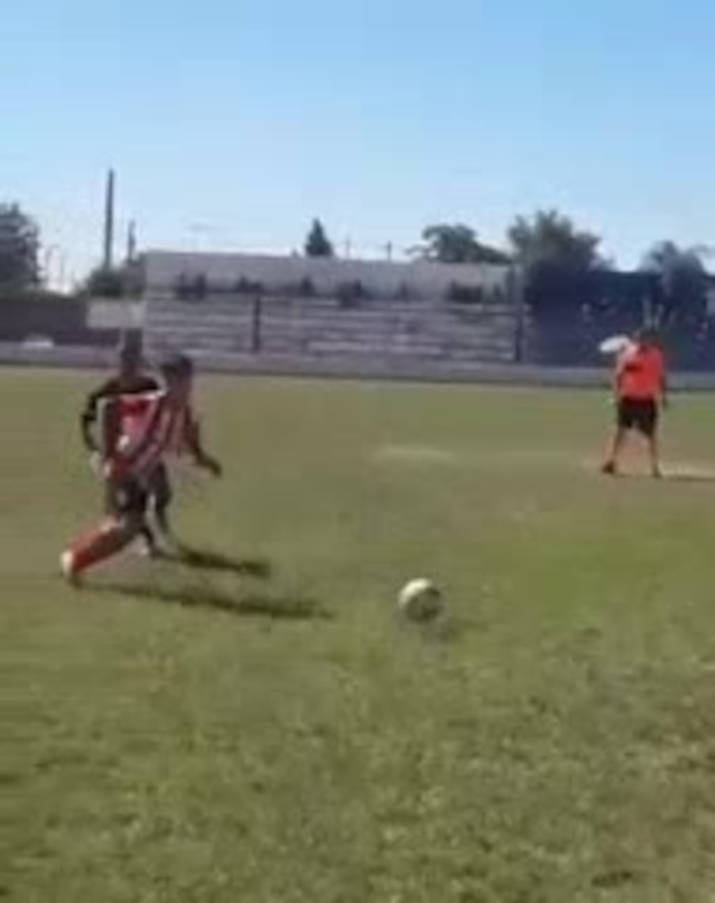 Por la Liga de Fútbol Villamariense de Córdoba, un jugador cometió una violenta infracción ante un contrario.