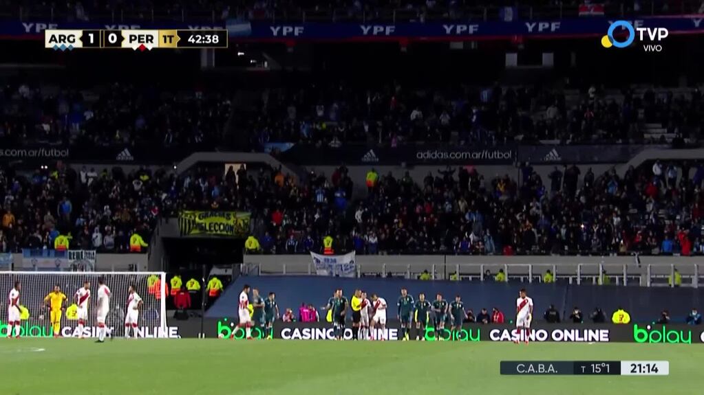 El delantero del Inter definió de cabeza hacia el segundo palo del arquero peruano, luego de una gran jugada colectiva entre Nahuel Molina y Rodrigo De Paul. El centro provino desde la derecha por parte de Molina y el Toro remató fuerte y preciso de cabeza para el 1 a 0 ante Perú en el Monumental.