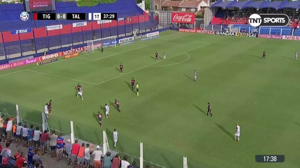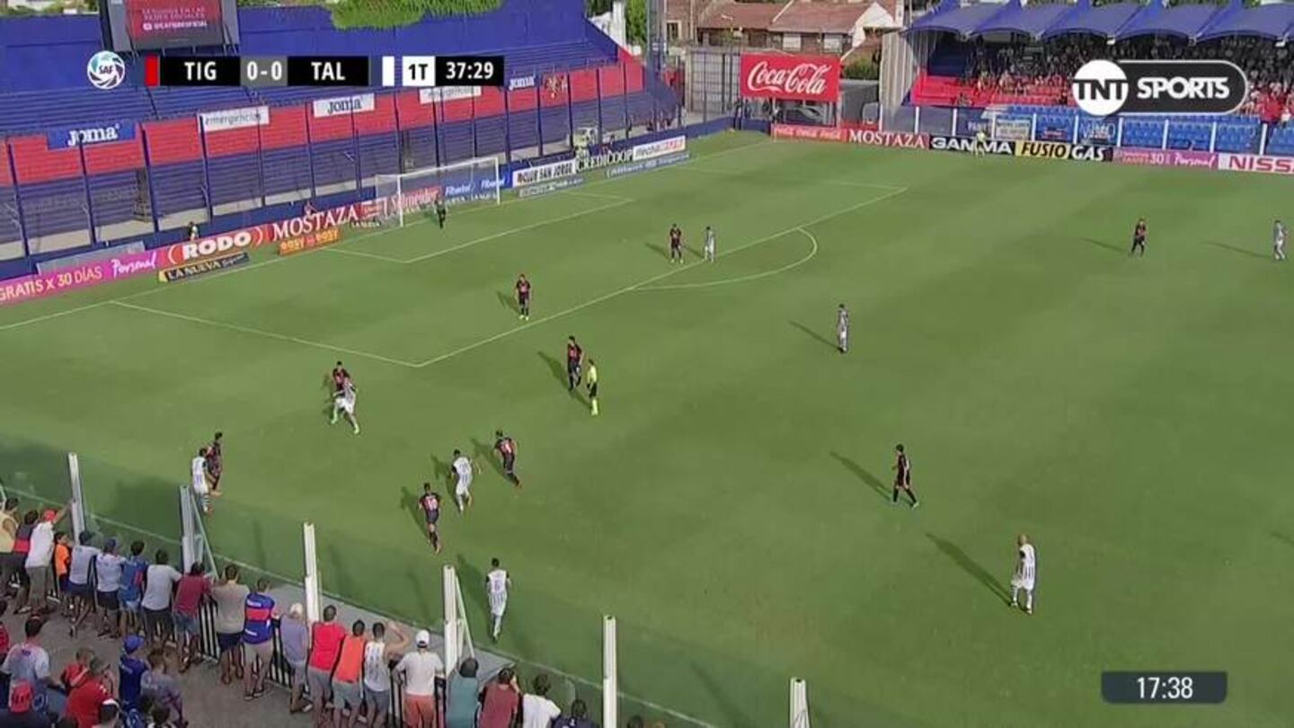 Luego de una falta en el área a Ramírez, el lateral izquierdo buscó el palo derecho de Chiarini, pero le erró al arco. Todo siguió 0-0 entre Talleres y Tigre.
