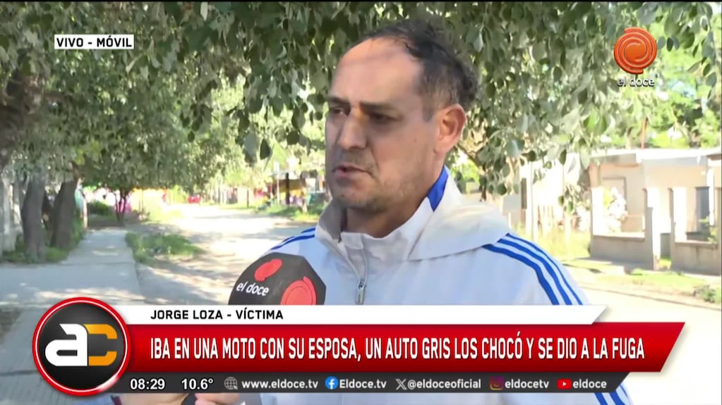 Iba en una moto con su esposa, un auto gris los chocó y se fugó: piden datos para encontrarlo, video del 07/10/2025, 12:25hs.