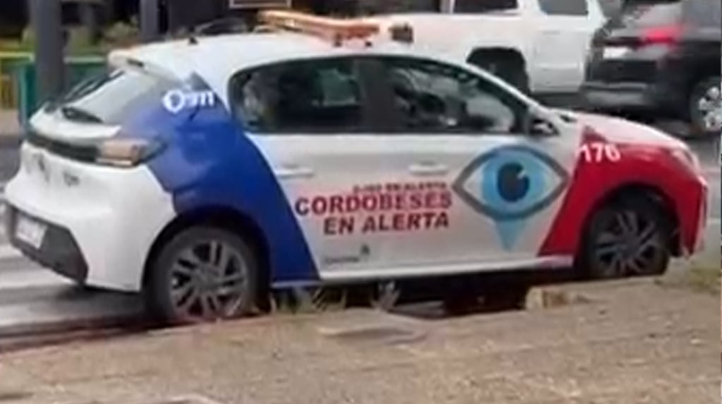 En el video captado por un vecino se observa que los efectivos también ubicaron el auto sobre una senda peatonal. Ocurrió en barrio Villa Belgrano.