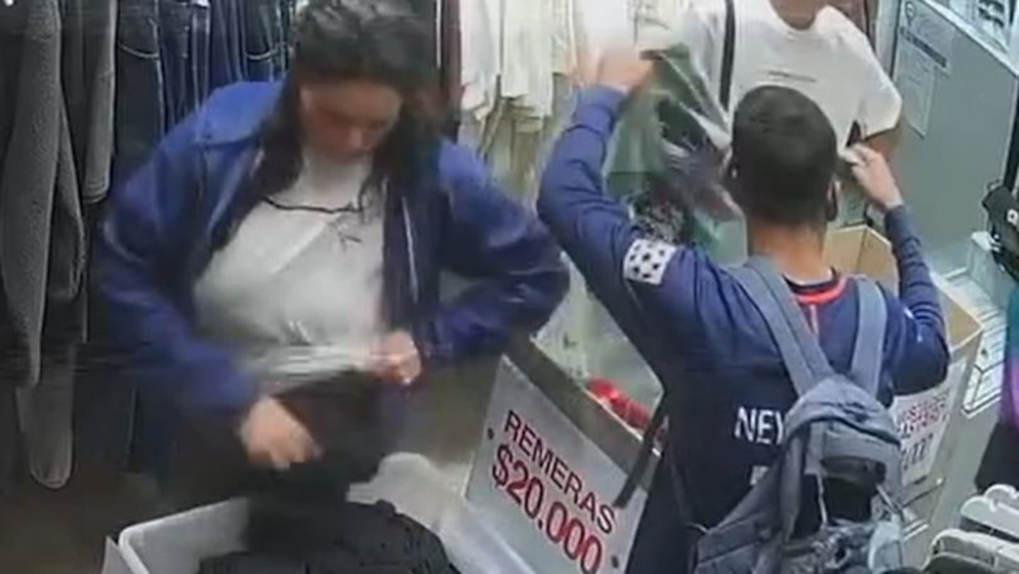 Una pareja de ladrones quedó grabada mientras se llevaban prendas de un comercio de ropa.