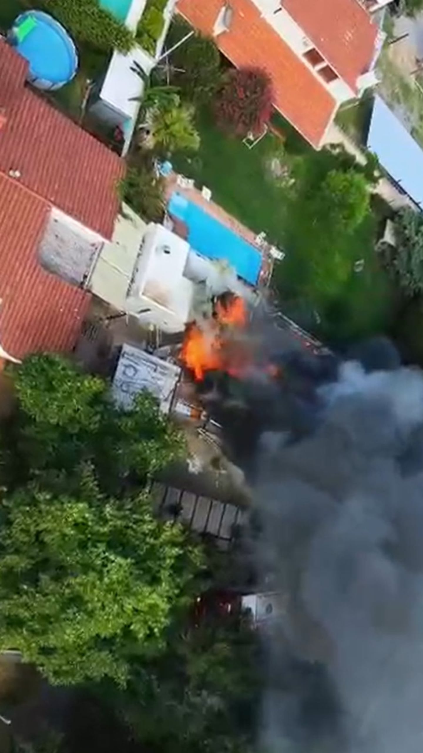 El incendio del restaurante de la Recta Martinolli desde el aire