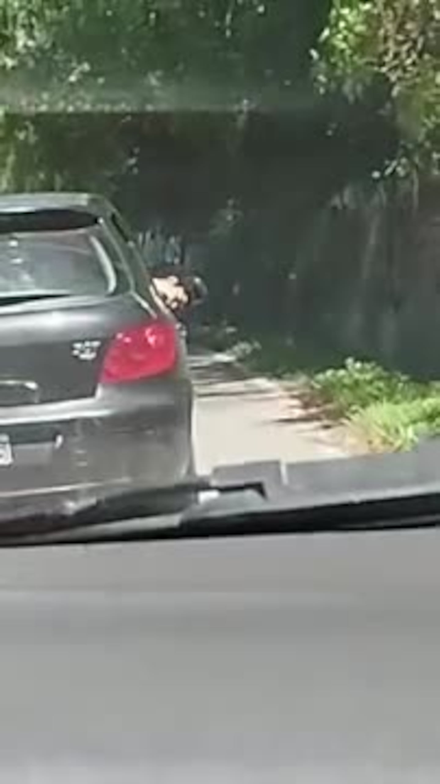 Una usuaria filmó cómo el conductor de un auto llevaba a su copiloto colgando de la ventanilla.