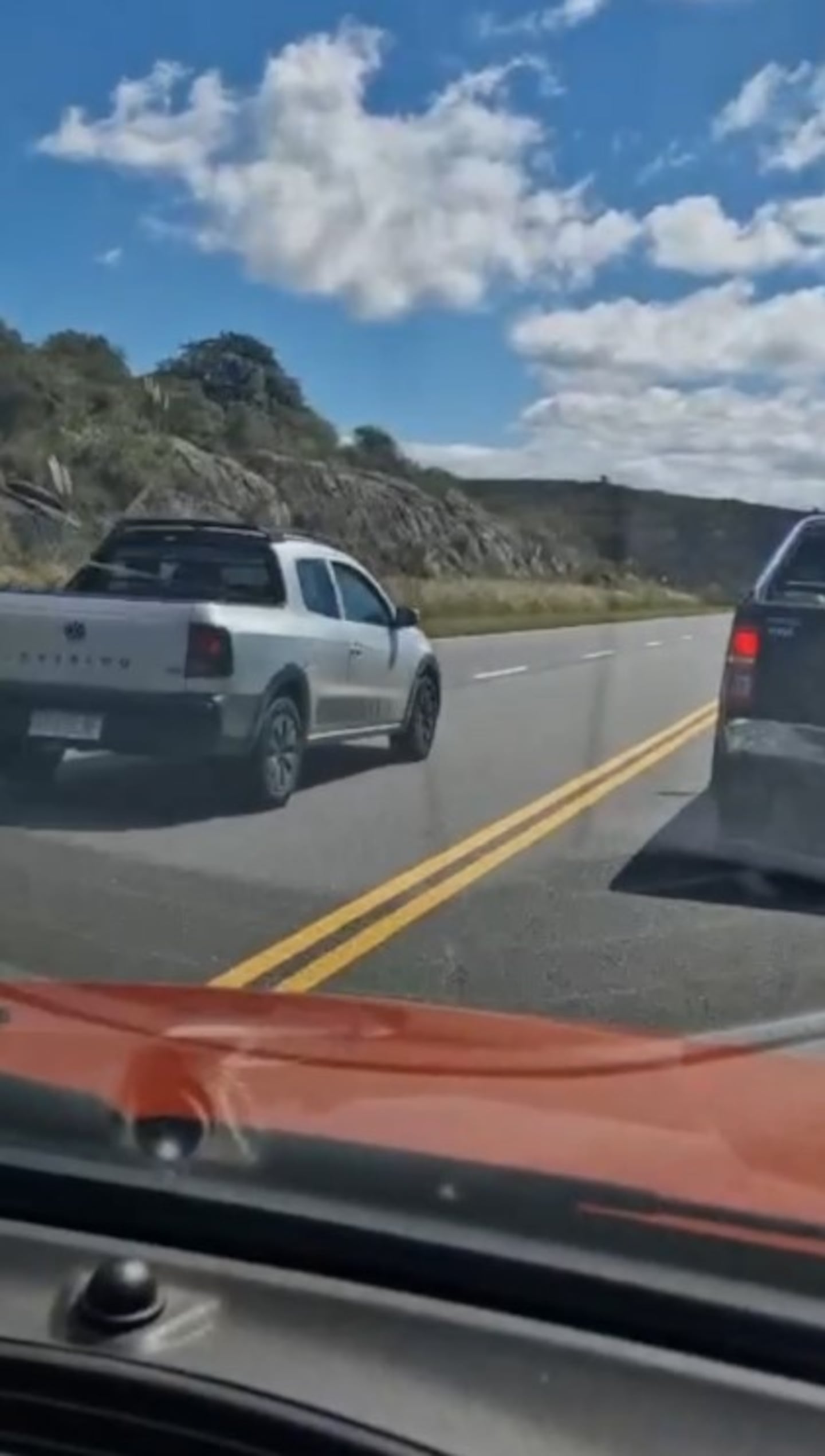 Una Volkswagen Saveiro casi provoca un choque frontal luego de sobrepasar en doble línea amarilla a la altura de Copina.