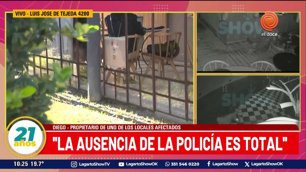 Al menos tres locales gastronómicos de la calle Luis José de Tejeda fueron robados en una misma madrugada. El delincuente se mueve cuerpo a tierra para evitar los sensores de alarma y ya quedó grabado en varios videos.