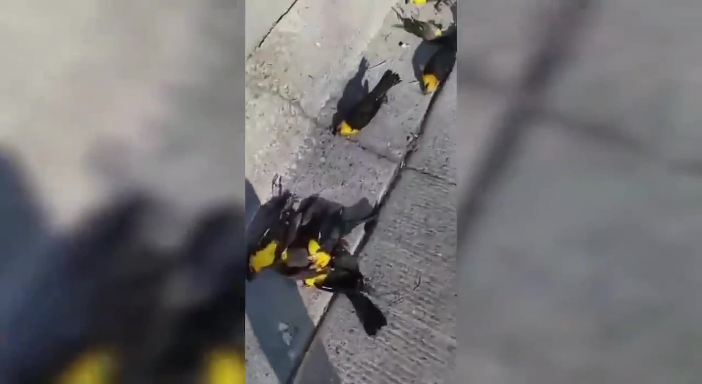 Ocurrió la semana anterior por la mañana y una cámara de seguridad captó el extraño suceso por completo. En las imágenes se puede observar como caen en picada hacia el suelo y la gran mayoría logra salir volando, pero otro grupo quedó totalmente duro tendido en el asfalto.