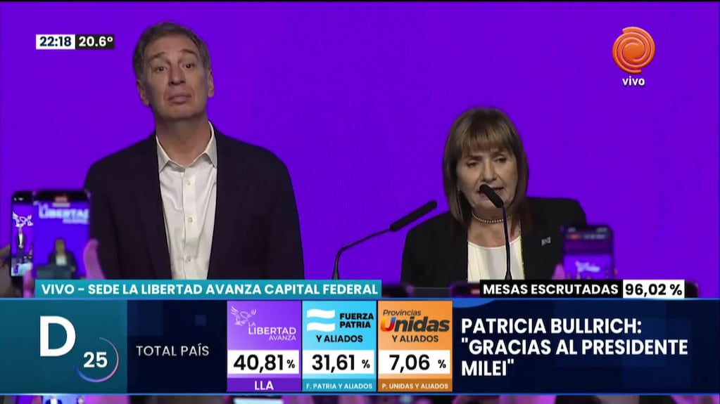 La ministra de Seguridad dio un encedido discurso para celebrar la victoria de La Libertad Avanza.
