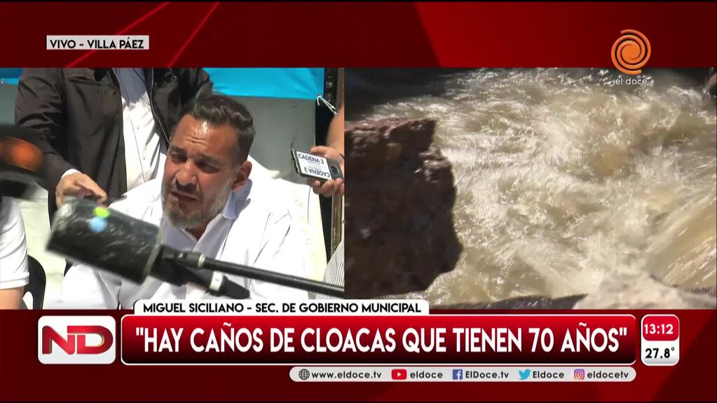 Miguel Siciliano, secretario de Gobierno, apuntó a los viejos caños "de hasta 70 años de antigüedad" y afirmó que "no es culpa de la Municipalidad ni de los vecinos". Su palabra en Noticiero Doce.
