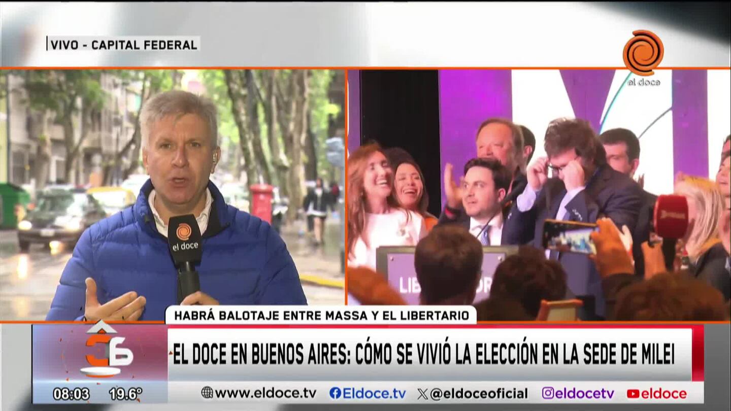 El periodista Néstor Ghino, enviado de El Doce a Buenos Aires, describió cómo se mostró el candidato de La Libertad Avanza cuando salió a escena y cómo lo hizo ante la militancia afuera del hotel. Una nueva etapa se juega otro partido.