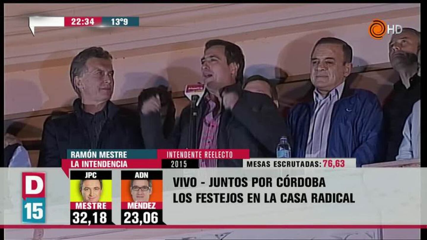 El intendente reelecto festejó en el balcón de la Casa Radical junto a Mauricio Macri, Ernesto Sanz y su vice Felipe Lábaque. Mirá el discurso.