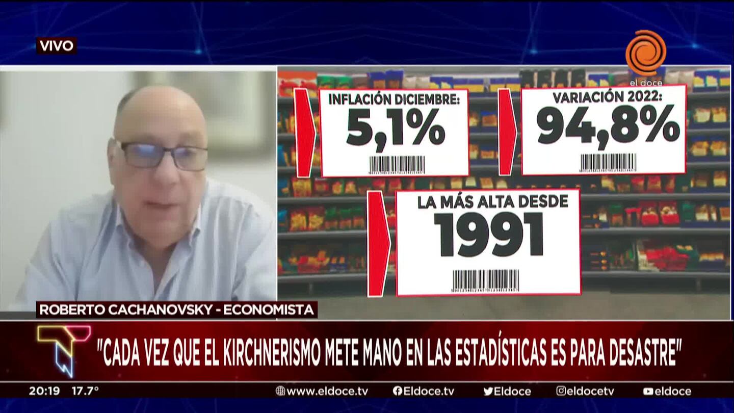 El Indec confirmó que el 2022 terminó con una suba de precios del 94,8%, la cifra más alta desde 1991. El economista Roberto Cachanovsky analizó la situación en diálogo con Telenoche y planteó una serie de errores que cometió, a su entender, el Gobierno con el plan económico. Afirmó que no hay billetes mayor valor porque "nunca van a reconocer que tienen un problema de inflación".