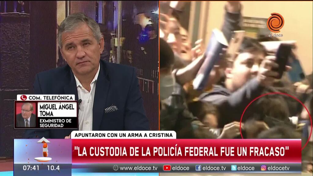 El exsecretario de Inteligencia, Miguel Ángel Toma, cuestionó el accionar de la custodia de la Policía Federal. La calificó como “un fracaso total” y sostuvo que hubo una “falta total de idoneidad”. Y reiteró: “Fue un desastre”.