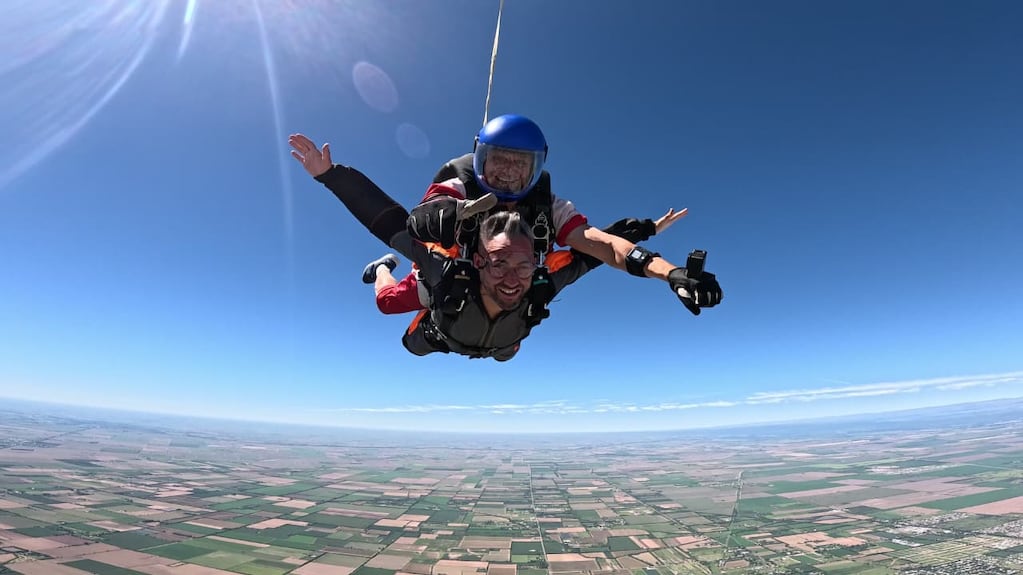 El periodista de El Doce superó el vértigo y se animó a lanzarse en el aire.