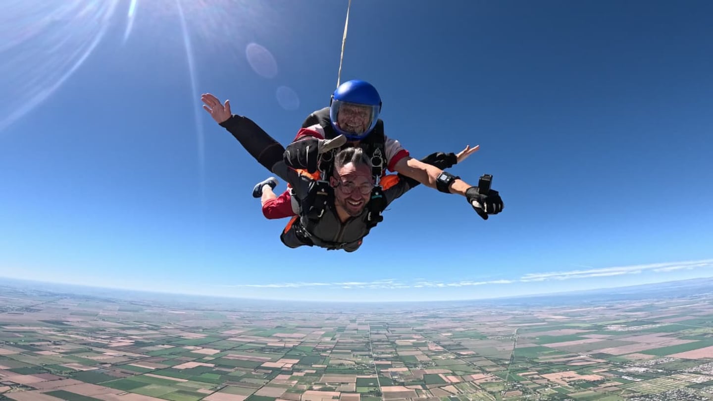 Desafiante salto en paracaídas de Juan Pablo Lavisse en Noticiero Doce