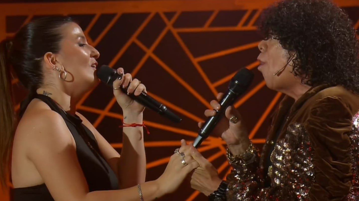 Tras su presentación, Laura no contuvo las lágrimas, abrazó a La Mona y cantaron juntos.