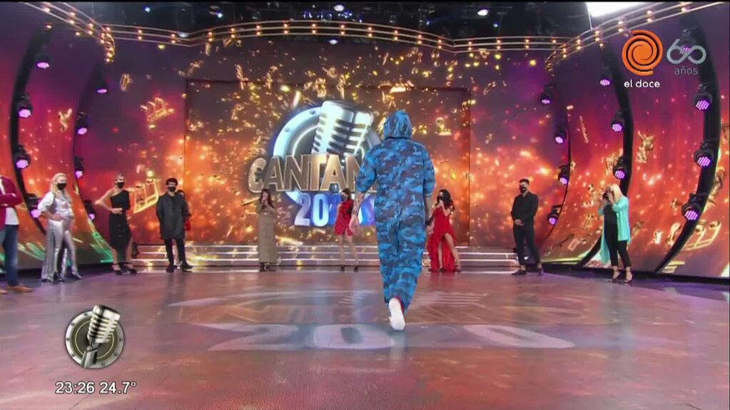 El cantante hizo un polémico gesto que generó el reto de Laurita Fernández, la conductora del certamen. "Pará, comportate. Hay muchas familias viéndonos".