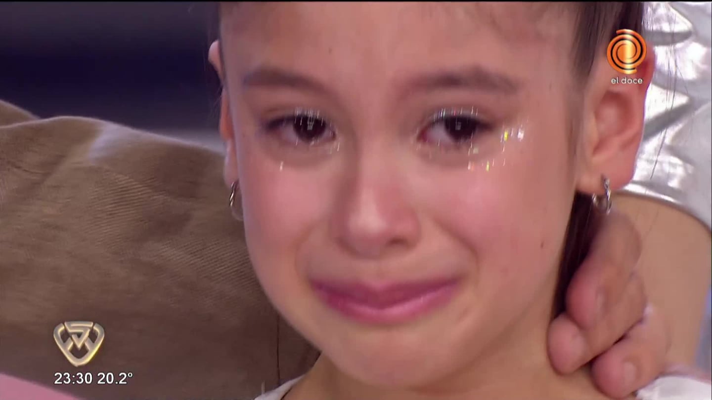 La niña de solo 9 años se emocionó al ver a sus padres apoyándola antes de su coreografía en ShowMatch. La pequeña acompañó a Agustín Barajas y Loli en la gala de este lunes en el nuevo ritmo de baile con niños.