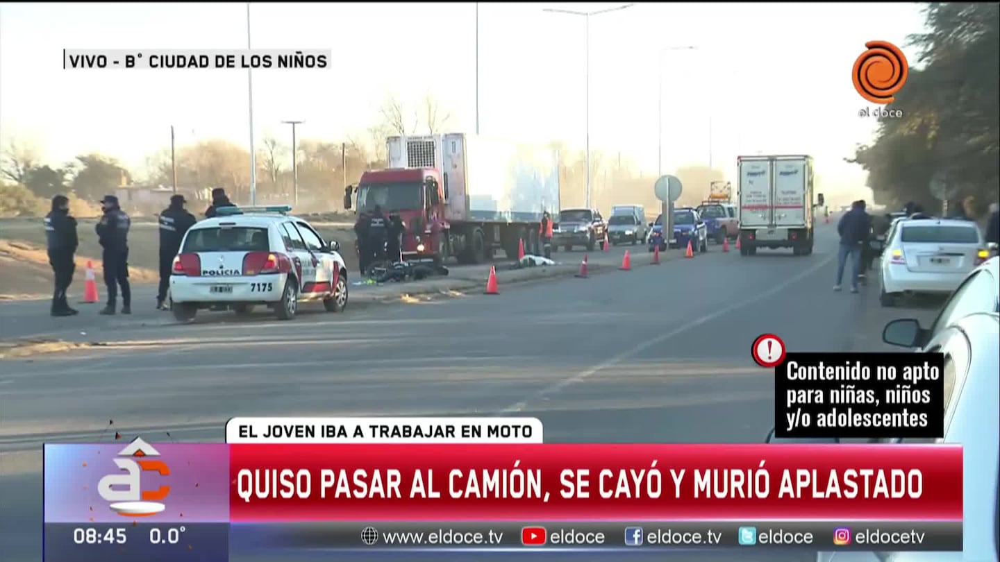 "La moto ha querido pasar a un camión que venia del norte de la localidad de Cruz del Eje y aparentemente pierde el control y cae sobre una rueda del camión”, dijo el comisario Ariel Giordano en Arriba Córdoba. La víctima que falleció al instante y era oriunda de la ciudad de Juárez Celman.