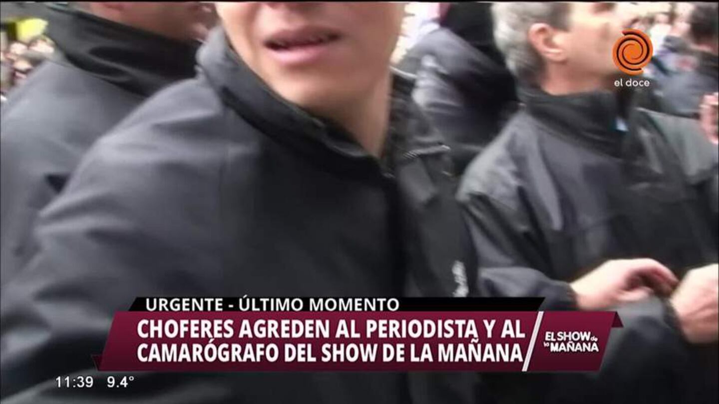 El equipo periodístico encabezado por el cronista Andy Ferreyra fue atacado por los choferes agrupados frente al Ministerio de Trabajo de la Provincia.