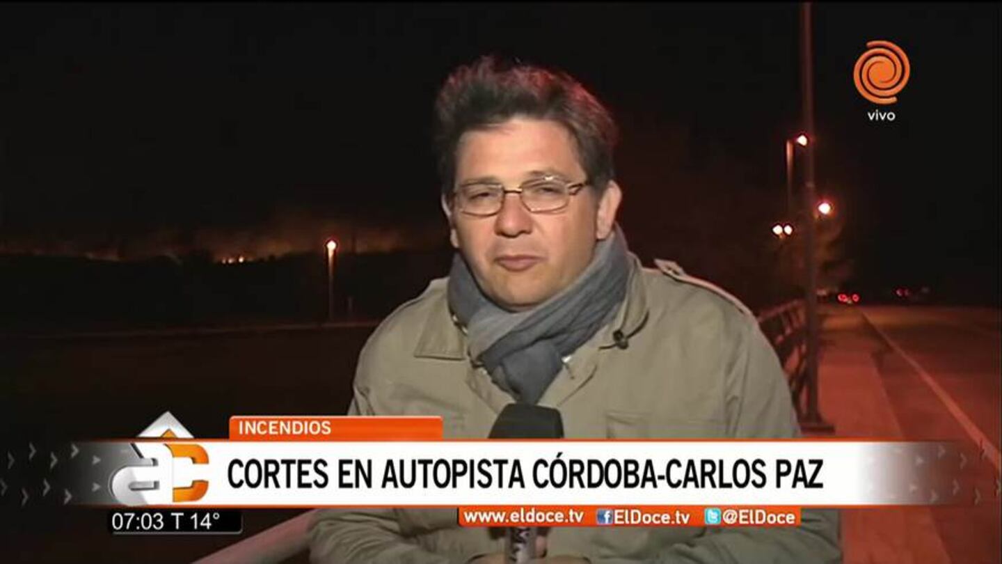 Cortaron la autopista Córdoba-Carlos Paz debido al fuego