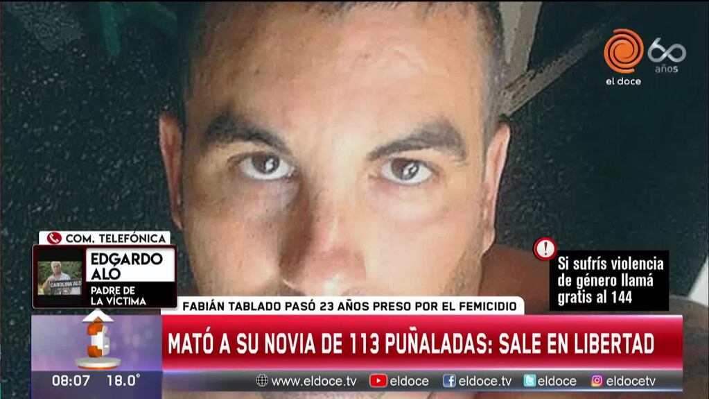 Este viernes liberan a Fabián Tablado, el hombre que mató a su hija de 113 puñaladas. Edgardo habló con Arriba Córdoba y criticó a la Justicia.