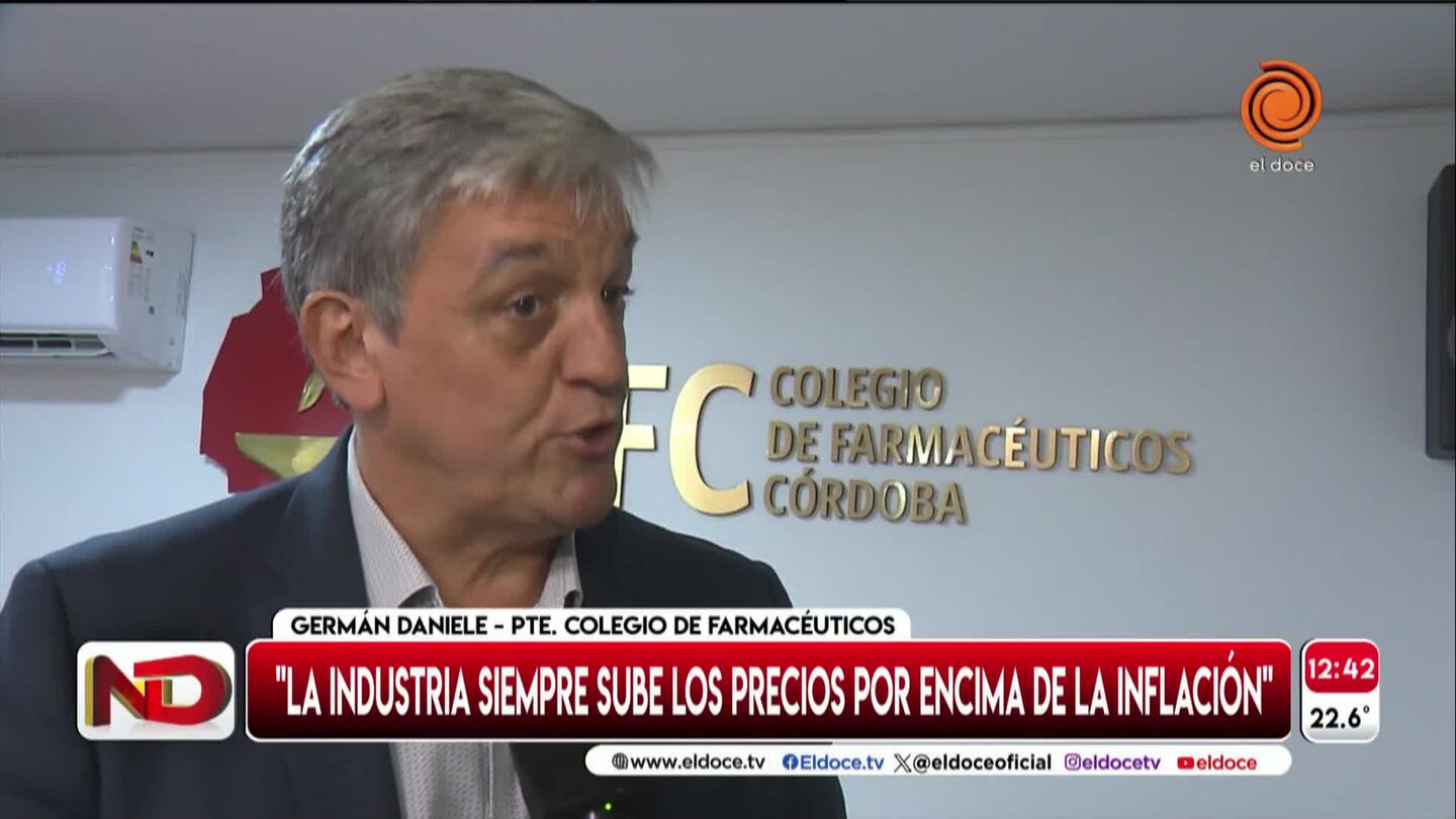 Germán Daniele, presidente del Colegio de Farmacéuticos de Córdoba, precisó en Noticiero Doce que los medicamentos dentro del Pami “valen casi la mitad de lo que sale fuera del Pami” por un convenio. A su vez, aclaró que el aumento entre diciembre y enero para Pami fue del 28,4 por ciento, mientras que para los que no están dentro del convenio, del 84,5.