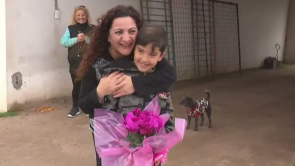 A fines de julio, la docente había evitado un desenlace fatal. Ahora, en el Día del Maestro, el pequeño alumno sorprendió a su "seño" en su casa de Oncativo.