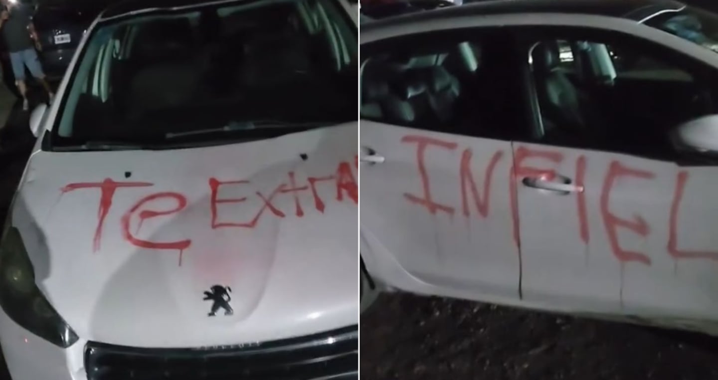 Las imágenes del Peugeot 207 con los mensajes pintados se viralizaron en TikTok (Video: @ericabeatrizagu41)